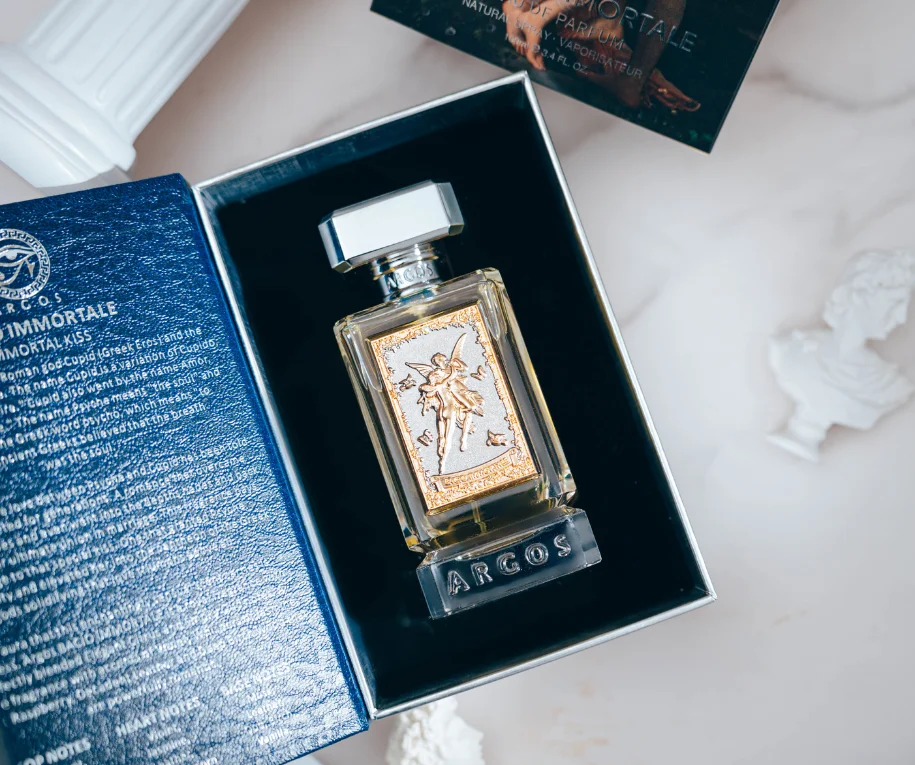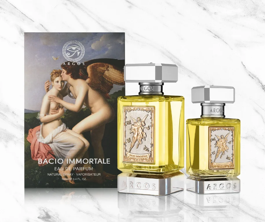 Celebrating the timeless love between Psyche and Eros, Bacio Immortale, or “Immortal Kiss,” encapsulates romance that defies the boundaries of life and death. The fragrance opens with bright citrus and smoky oud, creating a sense of mystery and passion. In the heart, hints of violet and jasmine intertwine with sweet raspberry, evoking the innocence and intensity of Psyche’s love for Eros. The base notes of rich leather and deep birch wood lend an earthy warmth, creating a scent that is both romantic and powerfully enduring, echoing the love that transcends mortality.